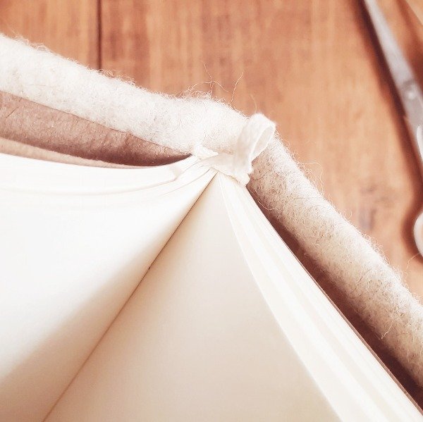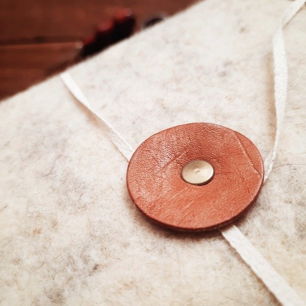 Encuadernado en fieltro de lana merino patagónica y cosido artesanalmente.